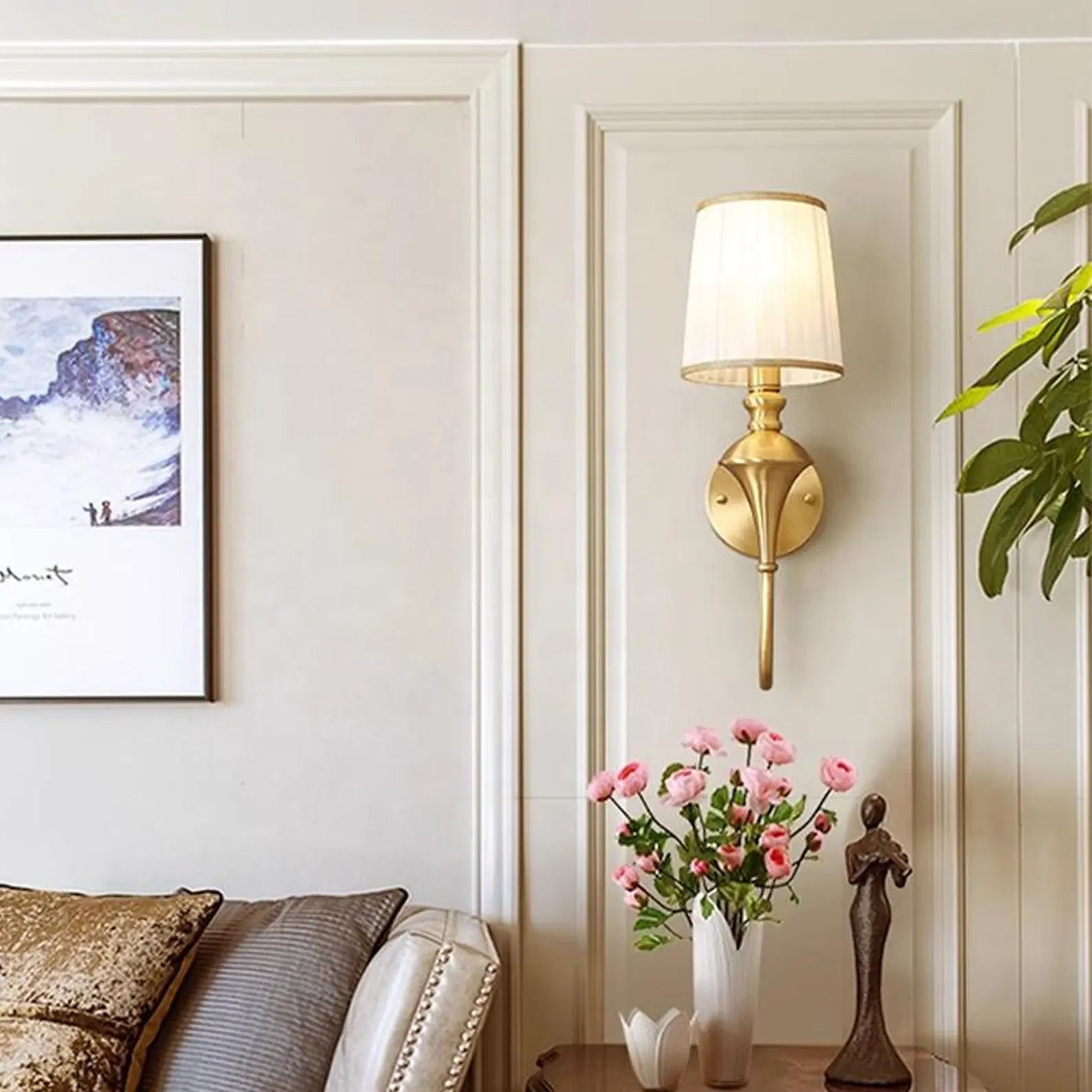 Illuminate your interior with this elegant Fabric Wall Sconce, featuring a luxurious upholstered shade and a refined brass metal base. Designed to blend modern classic charm with subtle Baroque-inspired detailing, this wall light adds warmth and sophistication to bedrooms, hallways, living rooms, or vanity areas. The soft fabric shade gently diffuses light, creating a cozy, inviting ambiance for both contemporary and traditional interiors.
