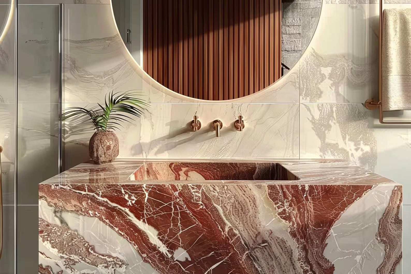 Red Marble Bathroom Vanity Sink