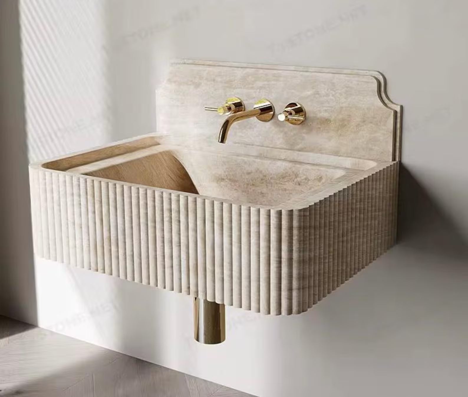 Enhance your bathroom or powder room with this luxurious Travertine Marble Sink, crafted from 100% natural beige travertine. Designed to combine timeless elegance with modern functionality, this wall-mounted or countertop basin brings a refined, spa-like ambiance to any interior. The natural stone veining ensures each sink is unique, creating a sophisticated focal point for high-end bathroom décor.