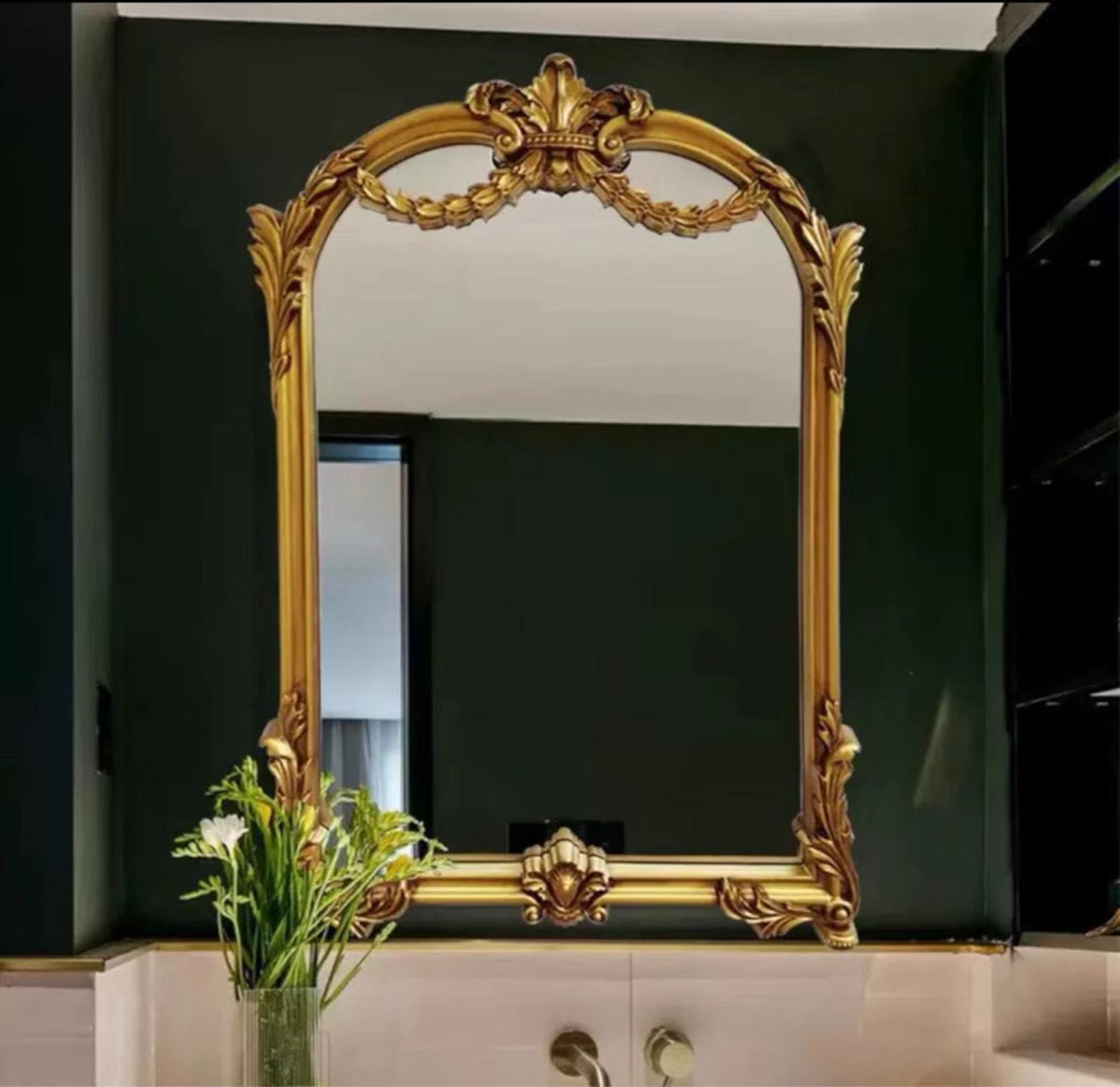 Bring timeless elegance into your space with this Antique Mirror, a stunning blend of vintage charm and classic glamour. Featuring intricate carved detailing and a rich antique gold finish, this Gold Baroque Ornate mirror instantly elevates bathrooms, vanities, and powder rooms with a luxurious, old-world appeal.