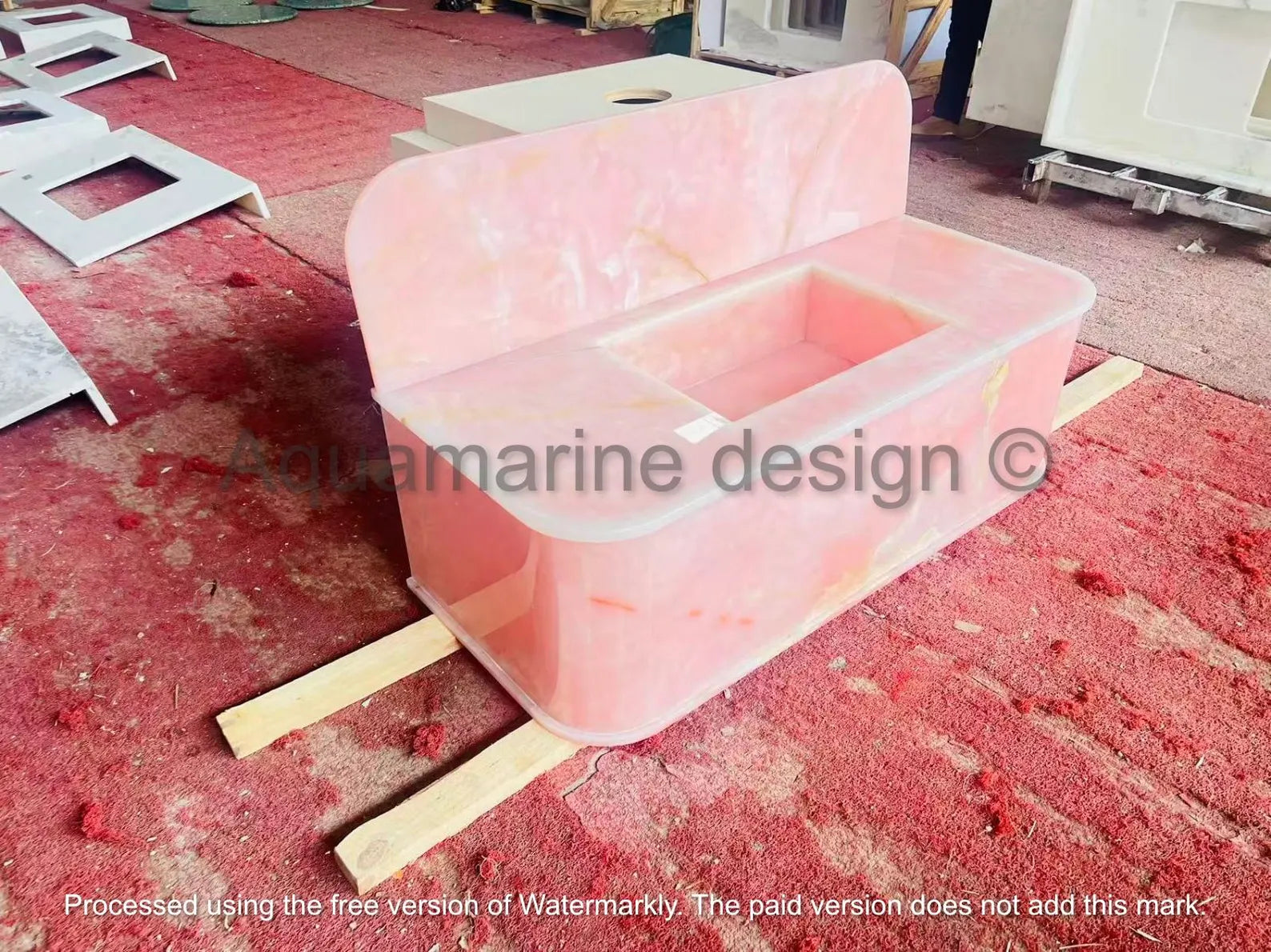 Natural pink onyx marble basin with unique veining