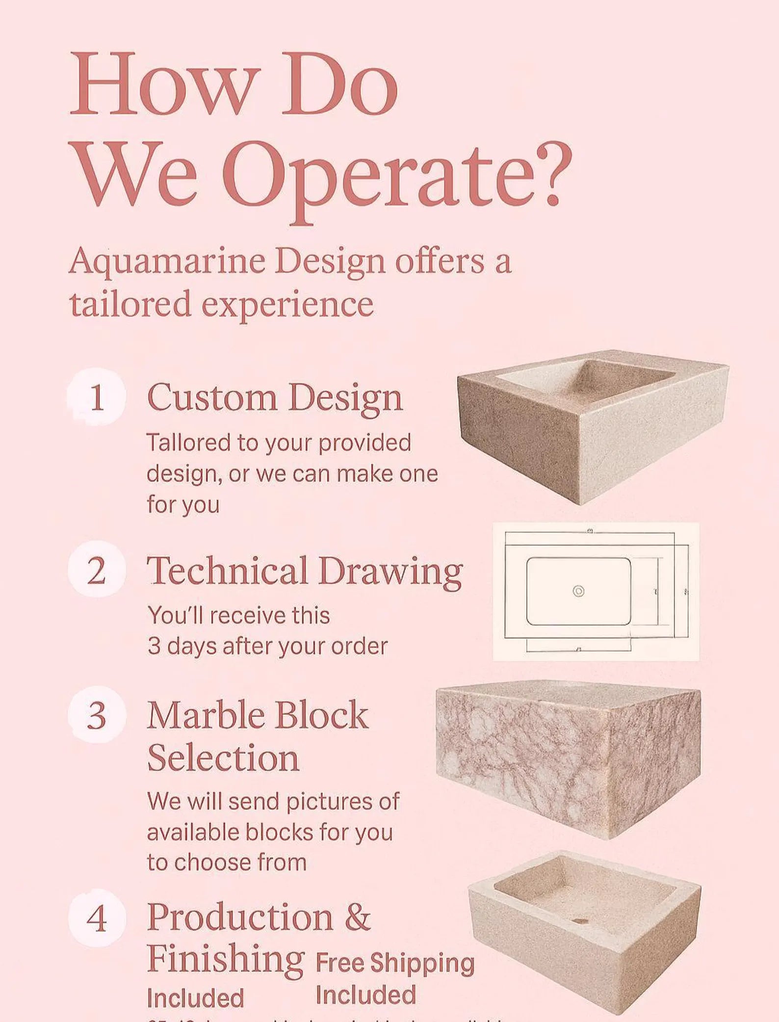 Each sink is custom-made, allowing for alternate dimensions, finishes, or configuration requests. Due to the natural characteristics of onyx marble, variations in color, veining, and tone are inherent—ensuring every piece is truly unique.